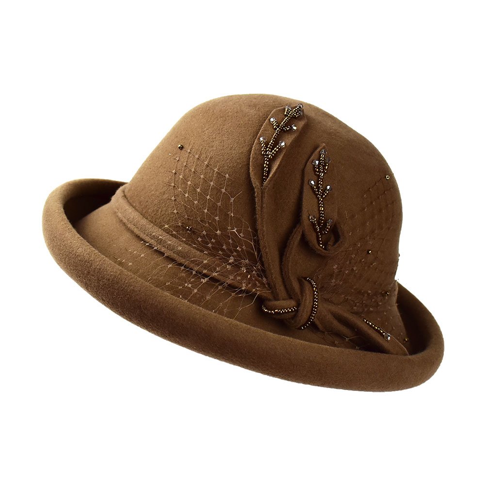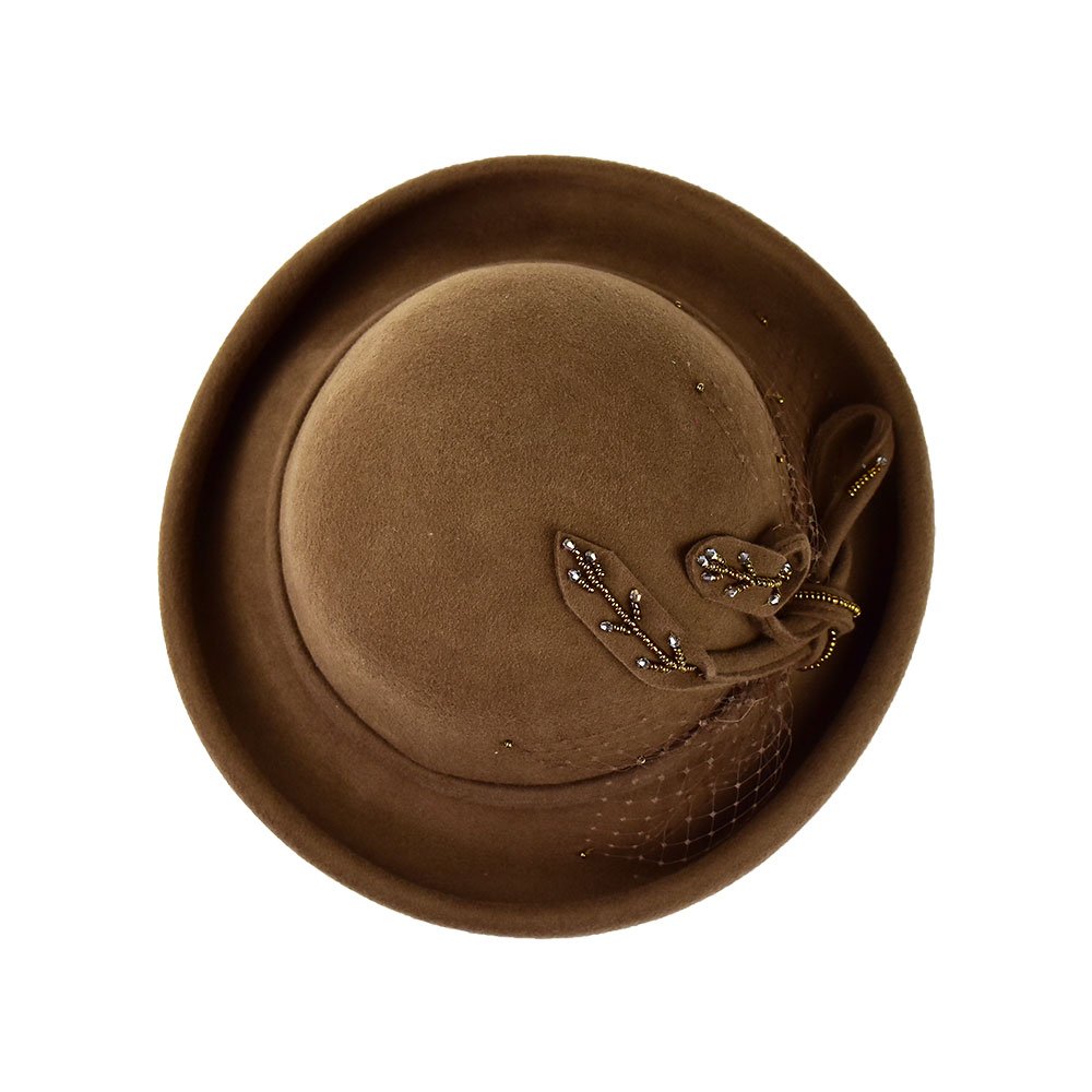 The color of this rolled up bowler hat is just like a warm coffee, and it will keep you cosy on those cool days. It features delicate fishnet and crystal beads tirelessly stitched for ultimate class. Bring a touch of 50’s elegance to your wardrobe.