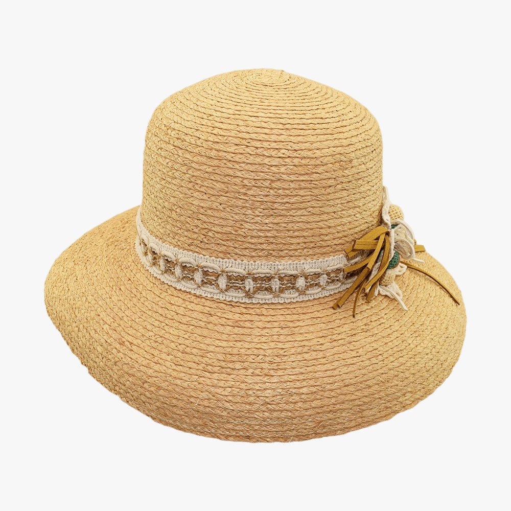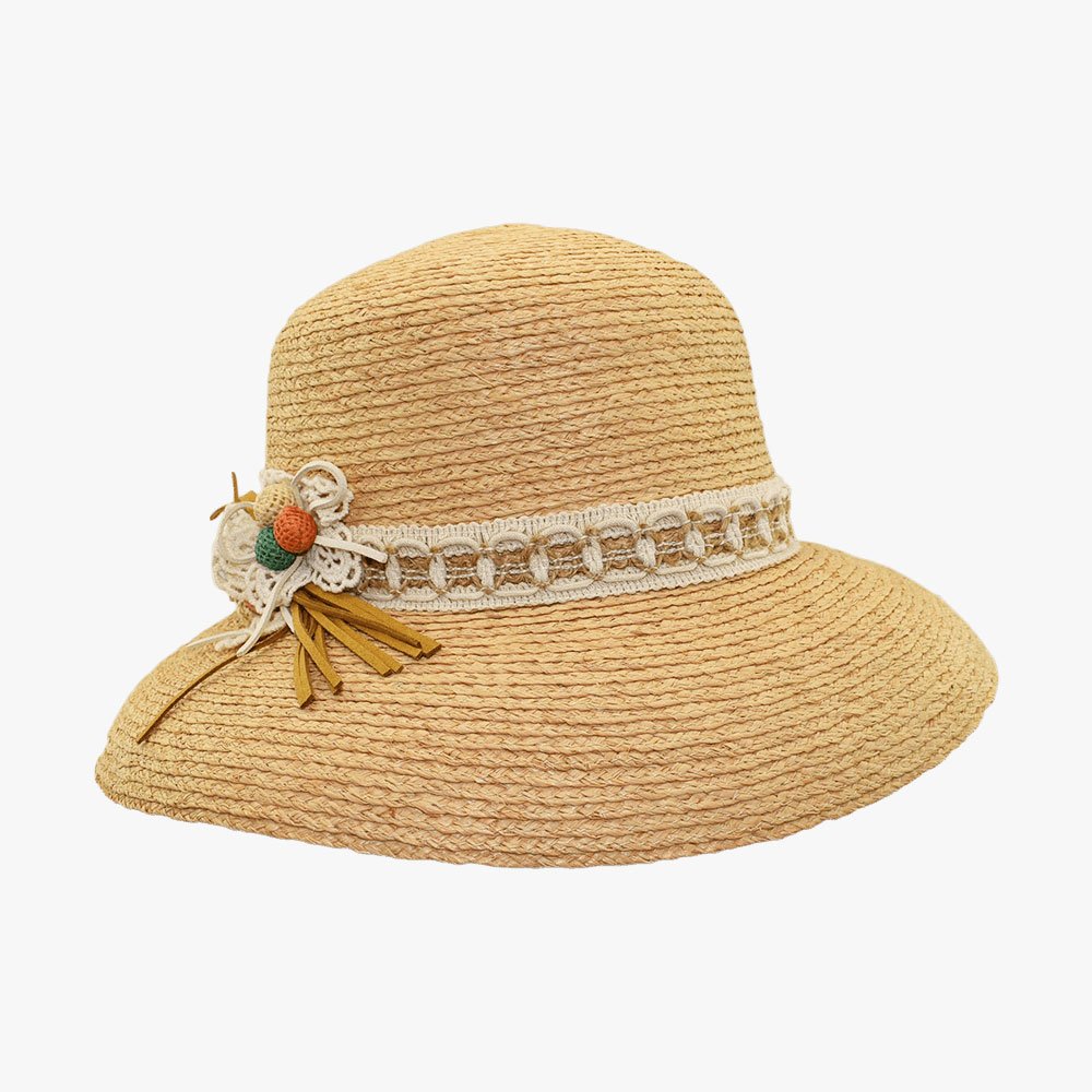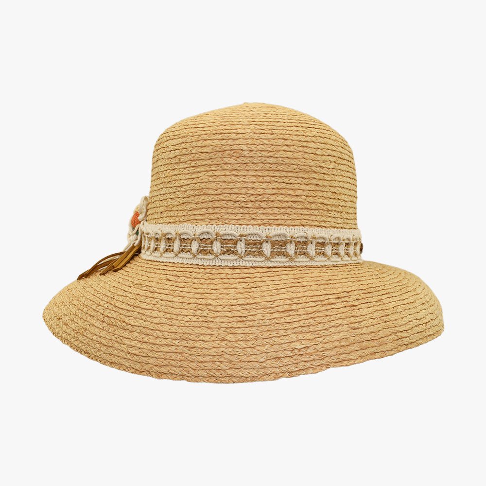 Never be caught out without sun protection in this perfect summer hat that is made for long lazy days in the sunshine. Made from breathable raffia it will keep you cool and looking great on even the hottest days of the year. It is accented with a stunning crochet medley of flowers, leather, and beads for a retro bohemian look.