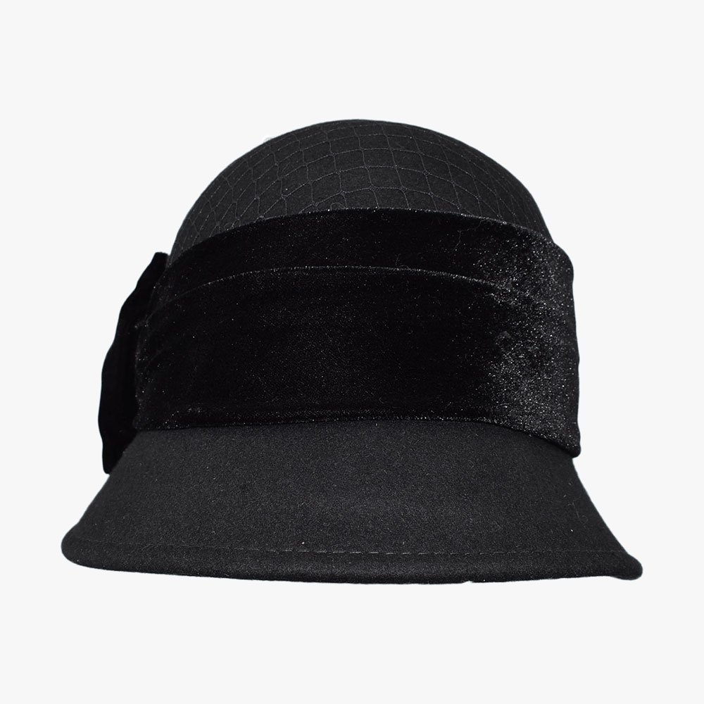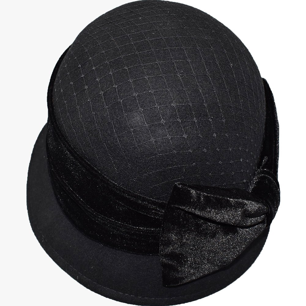 For that perfect sartorial statement, this stunning black cloche hat is what you need. A contrast of textures and a large showy velvet bow mark this one as a winner anywhere.