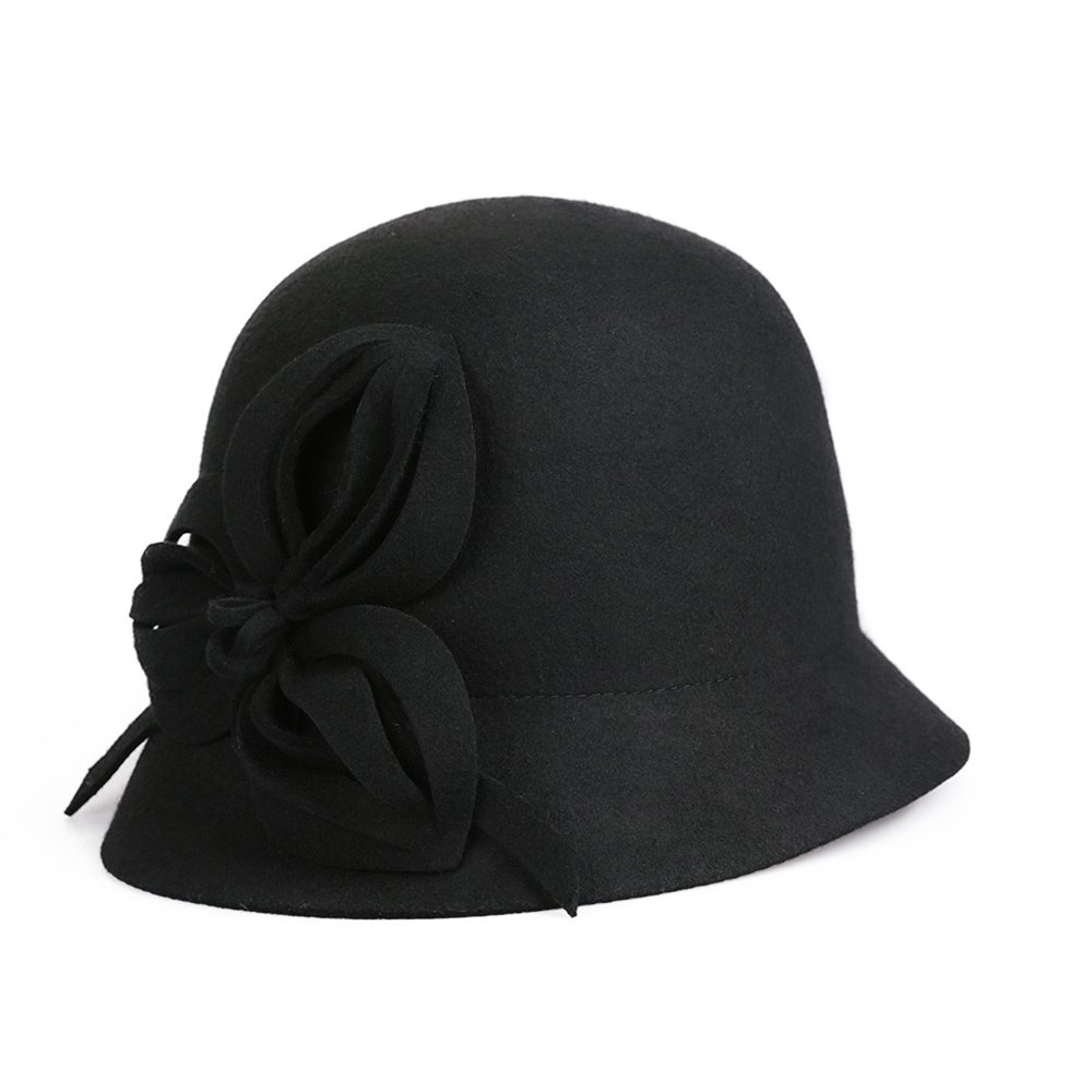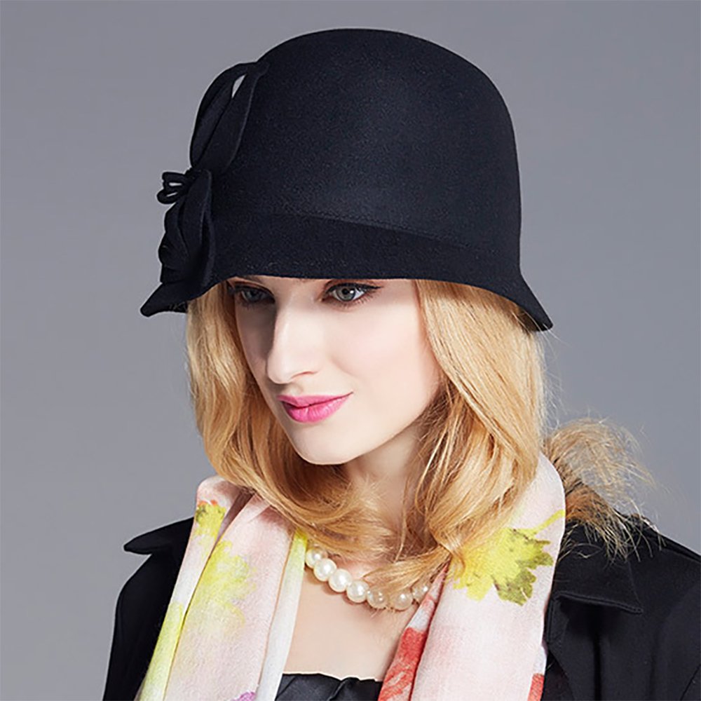 For that perfect sartorial statement, this stunning black cloche hat is what you need. A contrast of textures and a large showy bow mark this one as a winner anywhere.